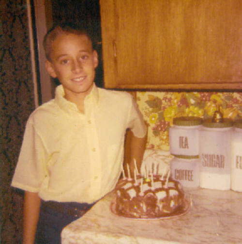 | Steve with one of the many cakes his two older sisters were always making for him... |